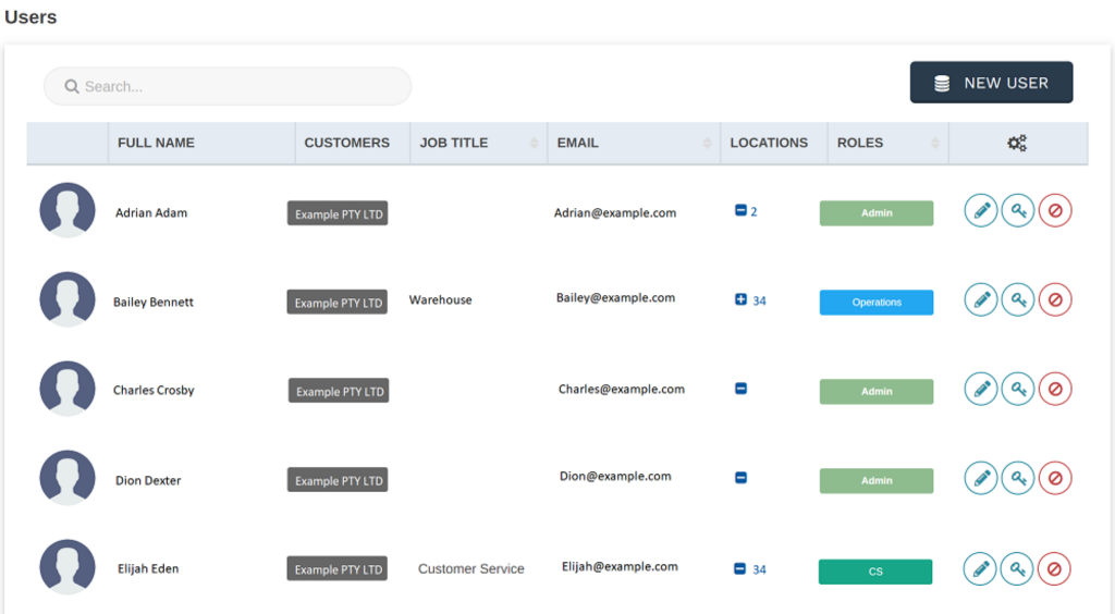 The list of current Users will populate displaying their name, job title (if included), email , locations, and role.
