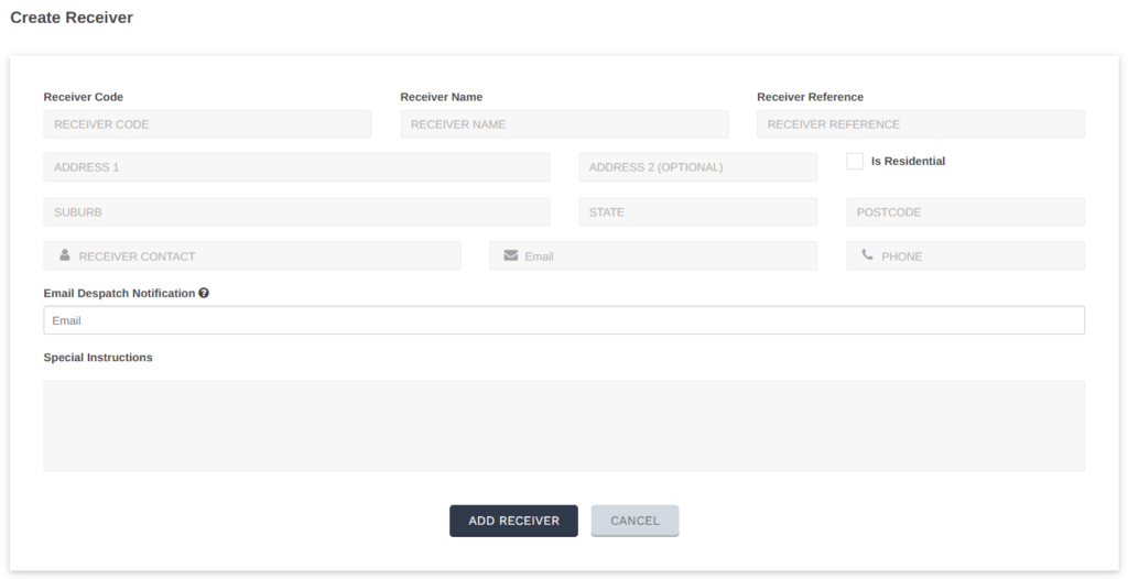 Once the receiver’s details are saved, you can simply enter just the receiver code chosen or begin to type the Receiver Name for details to auto populate.