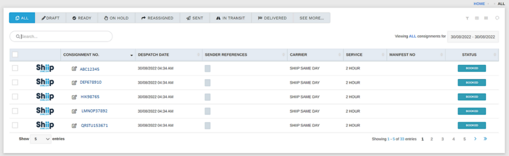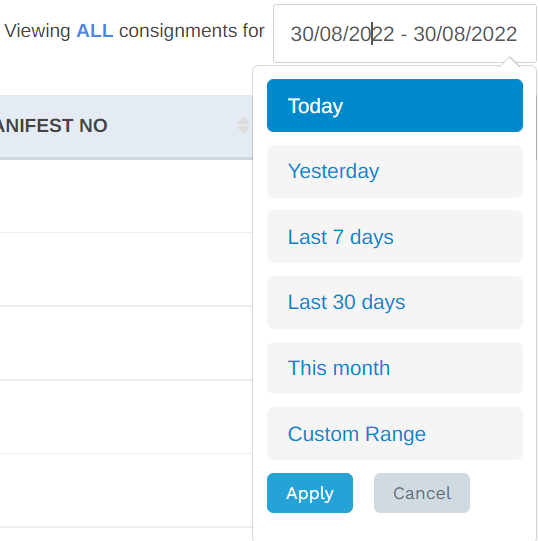 Alternatively, if you need to search a particular consignment, enter shipment number into the search field.