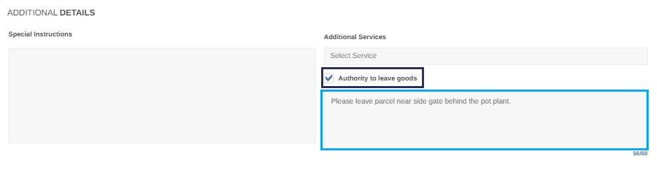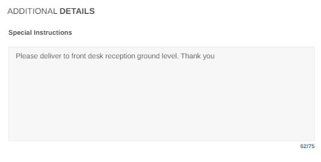 If there any additional delivery instructions required for the driver to specify location at delivery premises, simply insert in the Special Instructions comments box located under the ection titled Additional Details
