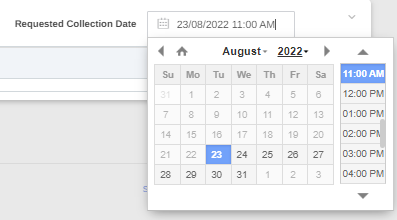 When creating a booking, under the section titled Transit Details, select Requested Collection Date.